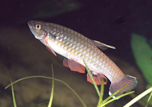Die unterdrückten Tiere zeigten im Laufe der Zeit nicht nur diese abnormale Körperhaltung, sie lagen auch zeitweise auf der Seite, mit dem Rücken auf dem Boden oder hingen regungslos in den Pflanzen. Sie versuchten jedoch nicht, sich vor dem Alpha-Männchen zu verstecken - die "Demutshaltung" fand immer mitten im Sichtbereich des ranghöchsten Fisches statt. Auffällig war während der gesamten Pflegedauer, dass ich keine direkten Angriffe auf die unterdrückten Männchen beobachten konnte, nachdem die Rangordnung feststand. Ich würde die Unterdrückung - vermenschlicht ausgedrückt - als ständiges Mobbing bezeichnen. Ich hätte eigentlich erwartet, dass bei der gegebenen Beckengröße sich zwei Männchen auf Dauer das Becken teilen. Dem war jedoch nicht so: Das Alpha-Tier drückte immer mehr gezielt das Beta-Männchen. Anfang April 2005 nahm ich das Beta-Männchen schließlich aus dem Aquarium um es zu erlösen. Es nahm zu diesem Zeitpunkt seit mehreren Tagen keine Nahrung mehr auf, lag regungslos am Bodengrund und war zuletzt am ganzen Körper zerbissen (das waren die einzigen direkten Verletzungen die zugefügt wurden). Nicht nur an der Körperhaltung, sondern auch an der Körpergröße war die Rangfolge zu erkennen: Das letzte Tier in der Rangfolge starb Anfang Juni 2005 mit einer Totallänge von 70 mm (Standardlänge 62 mm), das vorletzte Tier in der Hierarchie Mitte Juli mit einer Totallänge von 81 mm (69 mm SL). Das Alpha-Tier wuchs auf stattliche 105 mm Totallänge (90 mm SL) und das Beta-Tier auf 95 mm Totallänge (85 mm SL) heran. FortpflanzungObwohl ich im November 2003 nochmals drei Jungtiere bekam, die sich als ein Männchen und zwei Weibchen herausstellten, kann ich leider nicht von einer erfolgreichen Nachzucht berichten. Die drei Fische kamen in ein stark verkrautetes Aquarium mit den Maßen 80x40x50 cm. Als Beifische war nur ein Trupp Nannostomus marginatus vorhanden. Das torfgefilterte Wasser hatte eine Leitfähigkeit von ca. 100 S/cm und eine Temperatur ca. 24-25 °C. Das Männchen trieb regelmäßig sehr stark, jedoch kam es nur einmal zu einem erfolgreichen Ablaichen. Am 14. Januar 2004 war es so weit: Wenige Stunden vor dem Abschalten der Beleuchtung laichten beide Weibchen nach starkem Treiben seitens des Männchens ab. Als Laichsubstrat wählte das Männchen ein großes, fast waagrecht liegendes Javafarnblatt wenige Zentimeter unterhalb der Wasseroberfläche aus. Männchen wie Weibchen nahmen bereits während des Treibens eine weiße bis leicht rosafarbene Körperfärbung an. Beim Laichvorgang legte sich das Paar auf das Javafarnblatt. Das Männchen drückte sich fest an das Weibchen, nahm mit der Afterflosse die Laichkörner auf und verfrachtete die schlecht haftenden Laichkörner auf das Javafarnblatt. Pro Laichabgabe wurden grob geschätzt zwischen fünf und zwanzig Eier abgegeben. Herabfallender Laich wurde von den Elterntieren sofort verzehrt. Leider war am nächsten Tag das Gelege verschwunden und ich konnte kein erneutes Ablaichen beobachten. Im Gegensatz zu den unterdrückten Männchen im großen Becken versuchten sich die beiden Weibchen stets vor dem dominanten Männchen zu verstecken. Sie waren insgesamt sehr schreckhaft und wagten sich nur zur Fütterung aus der Deckung. Die Schwimmhaltung war bei beiden Weibchen normal, bis eines vom Männchen "misshandelt" wurde. Anschließend nahm das verprügelte Weibchen, wie bereits von unterdrückten Männchen bekannt, die schräge Schwimmhaltung ein. Leider verstarb es wenige Tage später. Mein FazitBei Pyrrhulina spilota handelt es sich um einen attraktiven und interessanten Schlanksalmler, der mit artfremden Fischen ohne Probleme vergesellschaftet werden kann. Was bleibt, ist ein fader Beigeschmack: Welche Beckengrößen sind wohl nötig, um eine Gruppe dieser imposanten Fische wirklich auf Dauer zu pflegen, wenn bereits ein dominantes Männchen ein Becken mit ca. einem Quadratmeter Grundfläche als Revier beansprucht? Nachtrag zum erreichten AlterEnde Oktober 2006 verstarb mein letztes der ursprünglich sieben Männchen ohne erkennbare Krankheitsanzeichen. Ich vermute daher, dass das natürliche Höchstalter dieser Art bei etwas über drei Jahren liegt. Literaturnachweis: