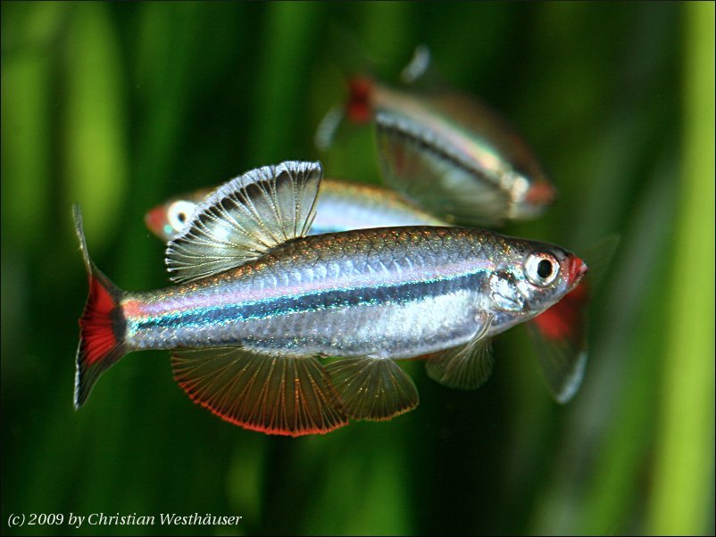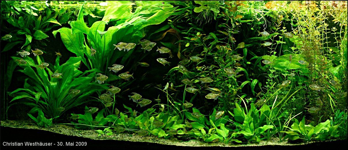 BildergalerieHier gebe ich Euch einen kleinen Einblick in meine Aquarien. Es sind nicht alle Becken vertreten, aber meine Vorlieben sind zu erkennen: Südamerikanische Salmler in Artaquarien und Wasserpflanzen. Wohnzimmeraquarium mit Brillant- und Regenbogenkaisersalmlern, Größe: 160x60x60 cm. Blutsalmler (Hyphessobrycon eques) Aquarium mit Tanichthys micagemmae und Zwerggarnelen (80x40x50 cm). Jungfisch von Nannostomus marginatus, ca. 10 mm TL. |